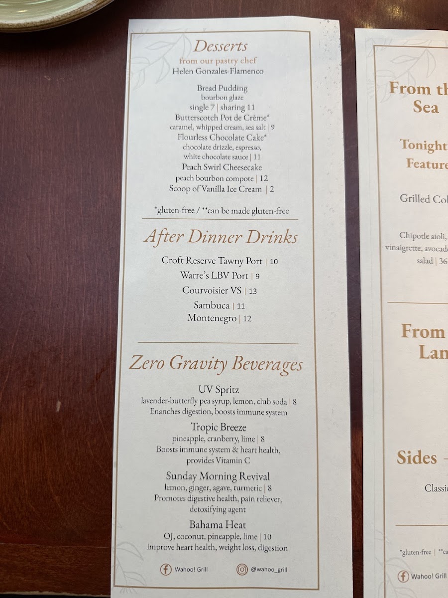 But the real showstoppers may just be the desserts. Treat yourself to the sumptuous Flourless Chocolate Cake drizzled with decadent chocolate, or share the Bread Pudding, laden with rich bourbon glaze, perfect for ending your meal on a high note.